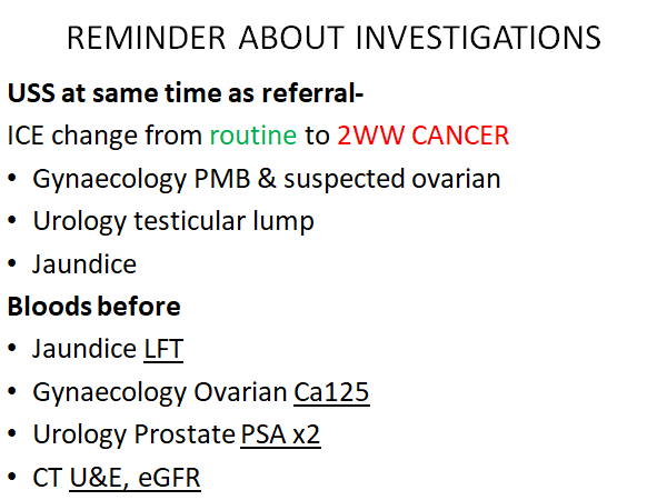 Can use options other than 2ww: routine referral; urgent referral or telephone
