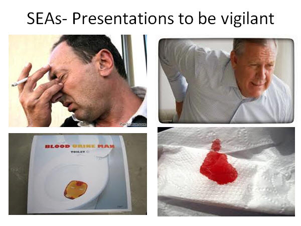 Haematuria- always check for infection. MSSU positive treat the infection