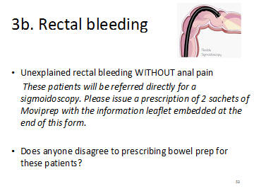 with anal symptoms or patient less than 40 without family history --straight to